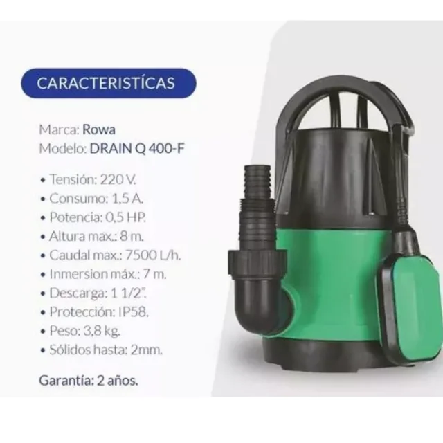 Bomba Sumergible Desagote Rowa Drain Q 400 F
