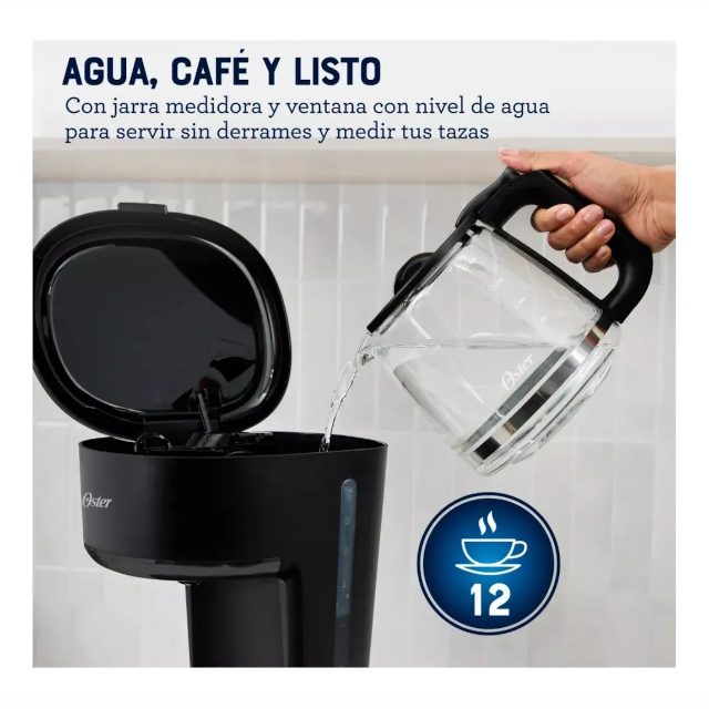 Empieza tu día con el inconfundible aroma del café recién hecho. Con la cafetera Oster® de 12 tazas, preparar tu bebida favorita es más fácil que nunca. Solo necesitas agregar agua, café y presionar un botón para disfrutar de un café delicioso en minutos.