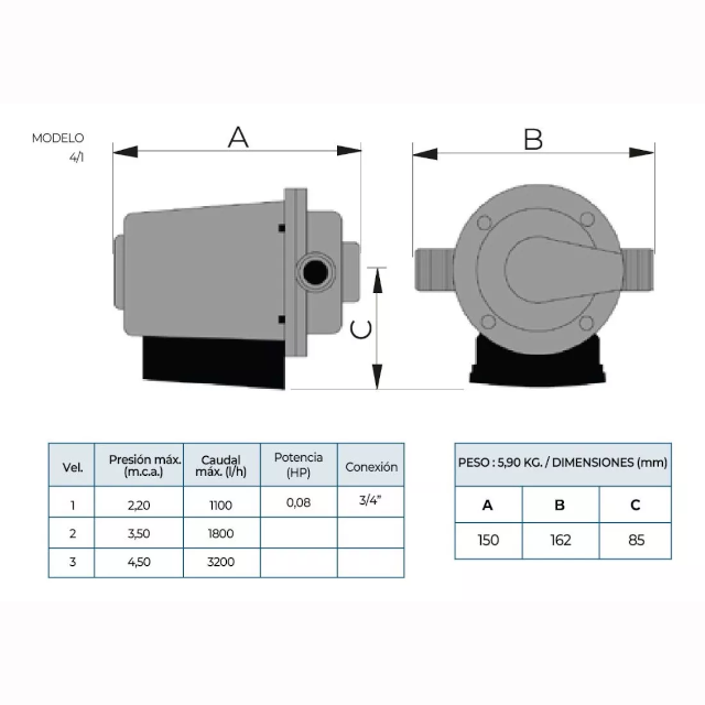 ELECTROBOMBA CIRCULADORA 4/1 3V