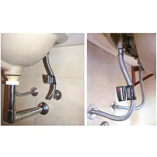 Flexible recubierto por una malla trenzada de acero inoxidable, con conectores en sus extremos, para uso en instalaciones sanitarias (artefactos sanitarios, bachas, bidets, inodoros con mochila)