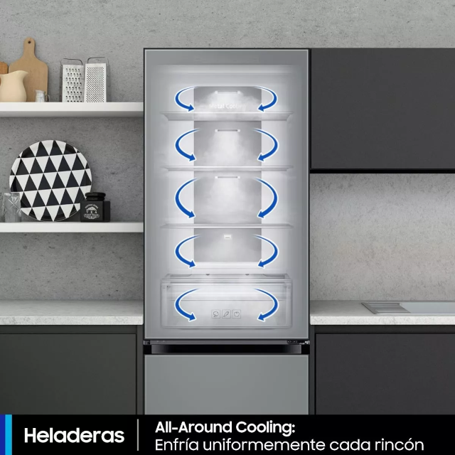 Además, por su tecnología inverter esta heladera enfría tus comidas a través de un sistema inteligente con sensores que regulan la velocidad del motor, sosteniendo la temperatura en forma pareja en el interior.