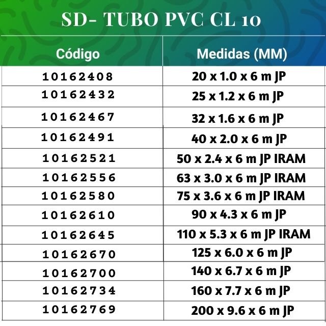 TUBO PVC CL10 32X1.6MM 6MTS JP TIGRE